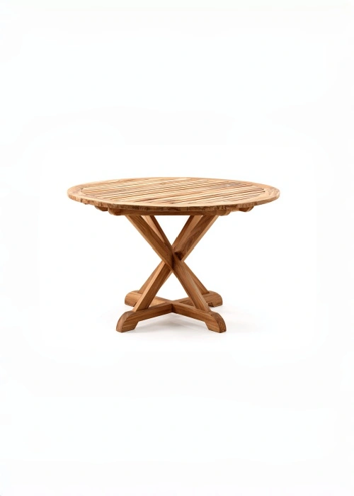 Tavolo da giardino rotondo con struttura a X 120x120x75 cm - marrone - stile naturale